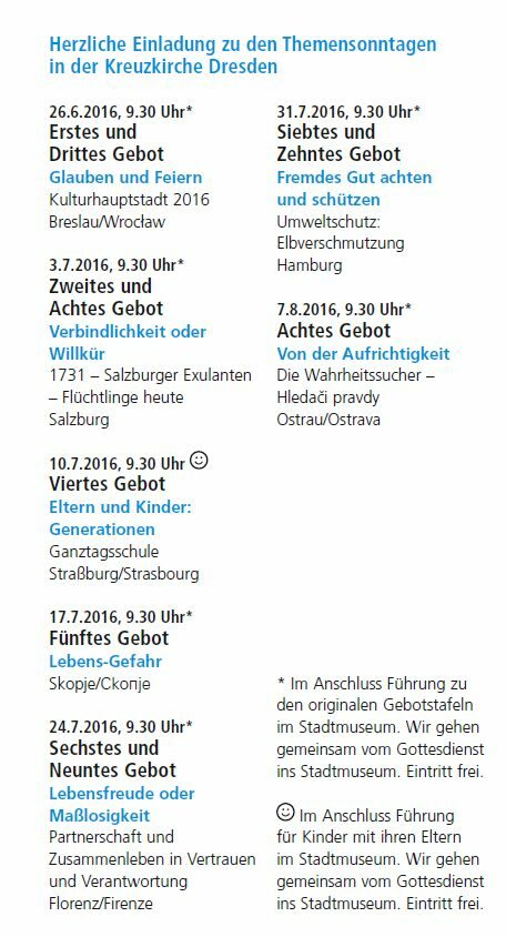 Den Hintergrund für diese besonderen Gottesdienste bildeten die Bildtafeln „Die Zehn Gebote“ aus dem 16. Jahrhundert von Johann dem Maler, die für die Kreuzkirche angefertigt wurden und sich heute im Stadtmuseum befinden. Die Bilder wollten damals zur kritischen Auseinandersetzung mit den ethischen Grundwerten der Gesellschaft anregen.