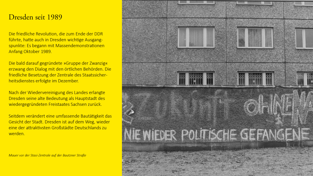 Den Dresdnern und den Freunden in aller Welt war und ist Dresden heute noch ein einzigartiger Ort, dessen Faszination sich auch auf eine reiche Geschichte gründet.