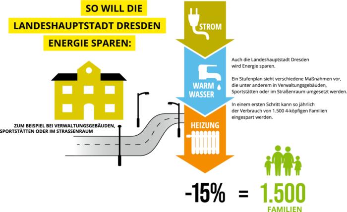 Angesichts dieser Maßnahmen hat eine „Task Force Energiesparen“ untersucht, an welchen Stellen die Landeshauptstadt Dresden Energie einsparen kann.