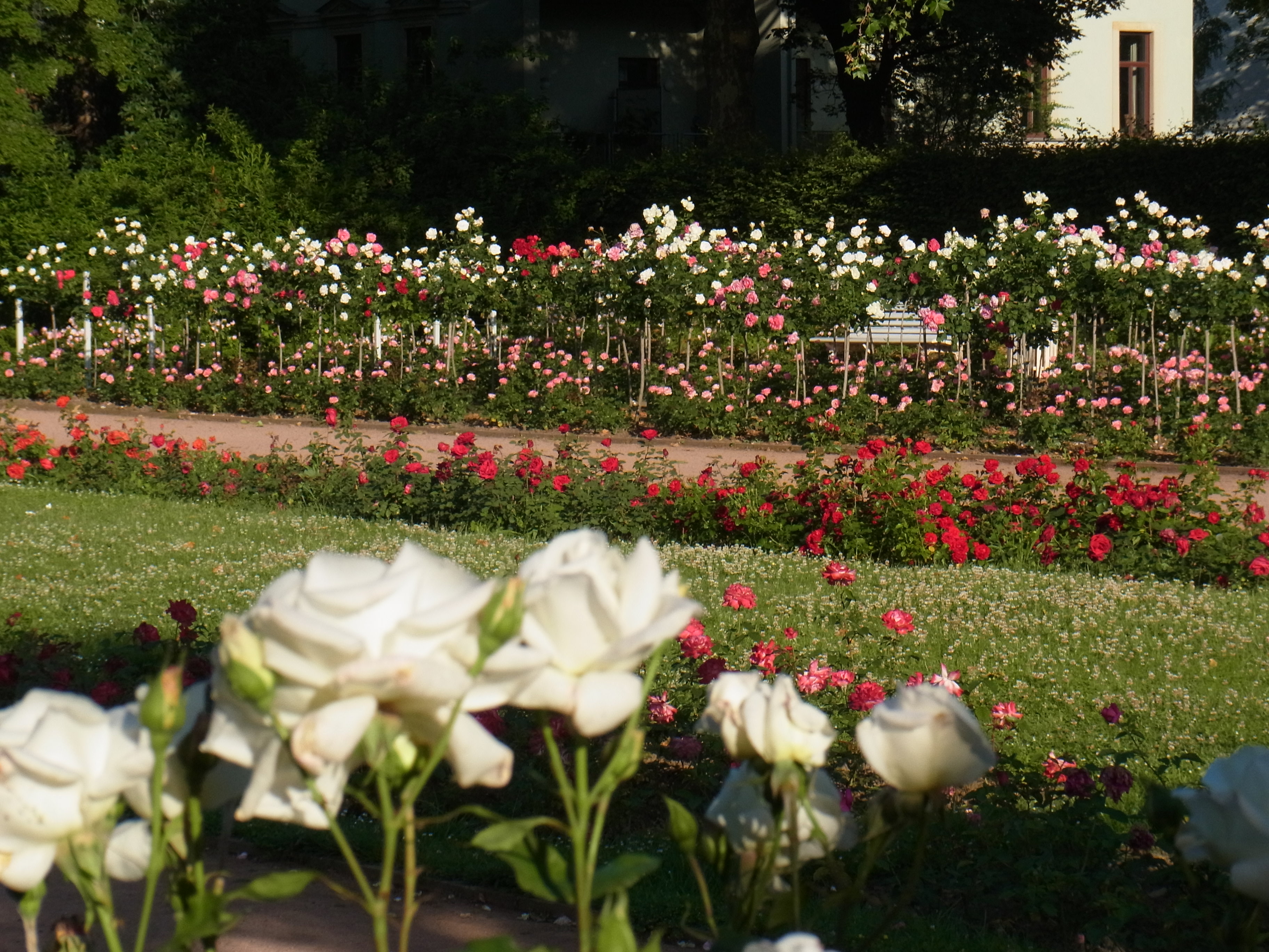 Von 1935 bis 1937 entstand auf der Neustädter Elbseite der heute unter Denkmalschutz stehende Rosengarten. Auf dem circa 29 500 m² großen Areal sind derzeit etwa 120 Rosensorten beheimatet, von denen ein Teil noch aus der Gründerzeit des Gartens stammen. Erhalt und Pflege dieser besonderen Anlage sichern die Mitarbeiterinnen und Mitarbeiter der Gruppe Rosengarten aus dem Meisterbereich Grünanlagenpflege Nord.