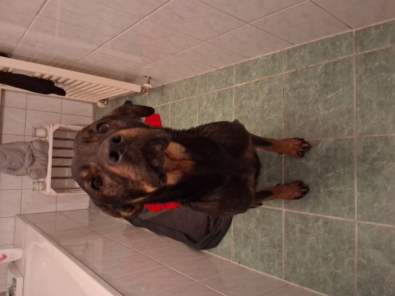 Anton ist ein Rottweiler-Labrador Rüde. Es ist fünf Jahre alt und nicht kassiert. Sein Papa ist ein reiner Rotti. Seine Mama ist ein Rotti Mix.