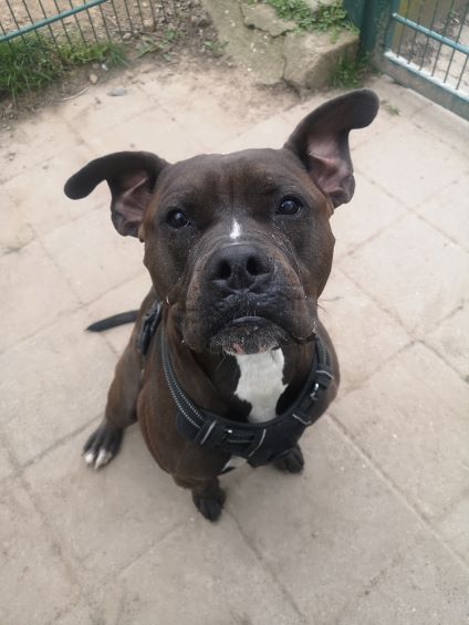 Hektor kam leider auf Grund mehrerer Beißvorfälle zu uns. Er ist ein starker, selbstbewusster Rüde, der weiß, was er möchte. Hektor zeigte sich uns gegenüber bisher immer freundlich und aktiv. Er geht sehr gern raus und bindet sich schnell an eine Bezugsperson. Trotzdem darf man Hektor nicht unterschätzen, da er einem Menschen durch seine Größe, Gewicht und nicht selten seinen Übermut doch einiges entgegenzusetzen hat. Durch seine früheren Fehltritte hat Hektor die Auflage bekommen, in der Öffentlichkeit eine Leine und einen Beißkorb zu tragen, welchen er sich aber bereitwillig aufsetzen lässt. Erschwerend hinzu kommt, dass bei Hektor leider ein angeborener Herzfehler diagnostiziert wurde. Momentan ist er auf Herztabletten eingestellt, welche er aber problemlos nimmt, um ihn dahingehend einfach etwas unterstützen zu können.