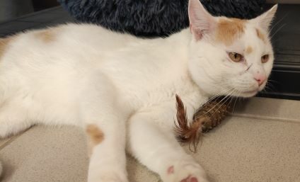 Der nette und aufgeschlossene Kater hat eine Futtermittelunverträglichkeit und ist auf hypoallergenes Futter angewiesen. Doch damit nicht genug, hat er noch ein weiteres Problem: Durch eine Verschmelzung zweier Schwanzwirbel hat er einen Gehfehler, der sich in „X-Beinen“ äußert. Er kann seinen Schwanz nicht zu 100% als Bewegungsausgleich verwenden, weshalb es zu diesem auffälligen Gangbild kommt. Eine medikamentöse Behandlung oder Operation ist nicht nötig oder möglich.