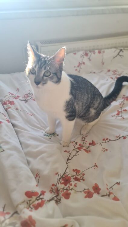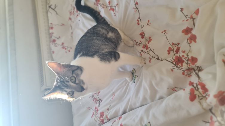 Fundkater Silver hat bei uns eine 180-Grad-Wendung vollbracht. Anfangs wollte er mit uns gar nichts zu tun haben, doch dann hat er gemerkt, dass wir doch gar nicht so übel sind – vor allem, wenn es um Streicheleinheiten geht. Die werden nämlich inzwischen penetrant eingefordert, ansonsten wird lautstark der Unmut kundgetan. Artgenossen mag Silver nicht so gern, weshalb er in seinem neuen Zuhause als Einzelprinz regieren möchte mit der Option auf Freigang. Mit Kindern sollte er keine Probleme haben.