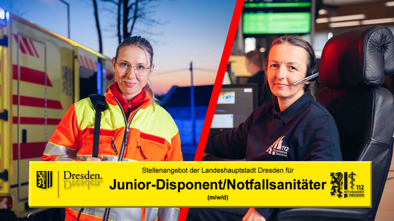 Sie möchten nicht nur helfen, sondern aktiv die Rettungskette mitgestalten? Dann bewerben Sie sich als Junior-Disponent und Notfallsanitäter (m/w/d) bei der Landeshauptstadt Dresden.en.
