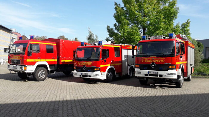 Feuerwehrfahrzeuge vorm Gerätehaus
