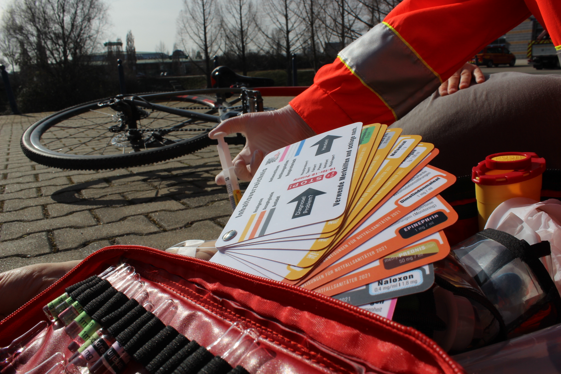 Basierend auf dem 11. CRM-Leitsatz: Verwende Merkhilfen und schlage nach“, kommen im Rettungsdienstbereich Dresden sogennante Medicheck-Karten zum Einsatz. Dies dient in erster Linie der Erhöhung der Sicherheit von Patient*innen und des Rettungsdienstpersonals. Für unsere Notfallsanitäter-Auszubildenden sind die Karten eine hervorragende Lernhilfe, denn sie sind kompakt und passen in die Tasche.