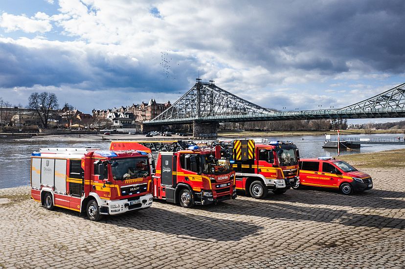 Feuerwehreinsätze ohne die notwendige Fahrzeugtechnik sind undenkbar. Personal und Gerät müssen zweckmäßig und schnell vor Ort gebracht werden. Die Ausstattung muss dabei einen hohen Einsatzwert aufweisen. In den vergangenen Jahren wurden zahlreiche neue Einsatzfahrzeuge für die Berufsfeuerwehr, die Stadtteilfeuerwehren und den Rettungsdienst beschafft. Die Dresdner Feuerwehr zählt damit zu den modernsten und am besten ausgerüstesten Feuerwehren in der Bundesrepublik.