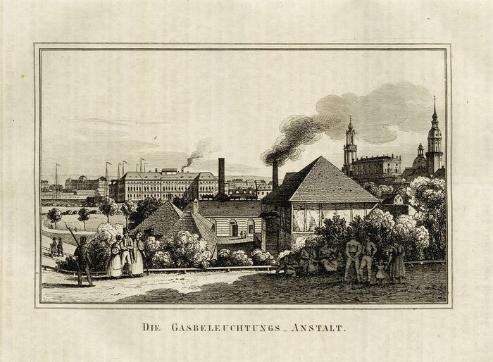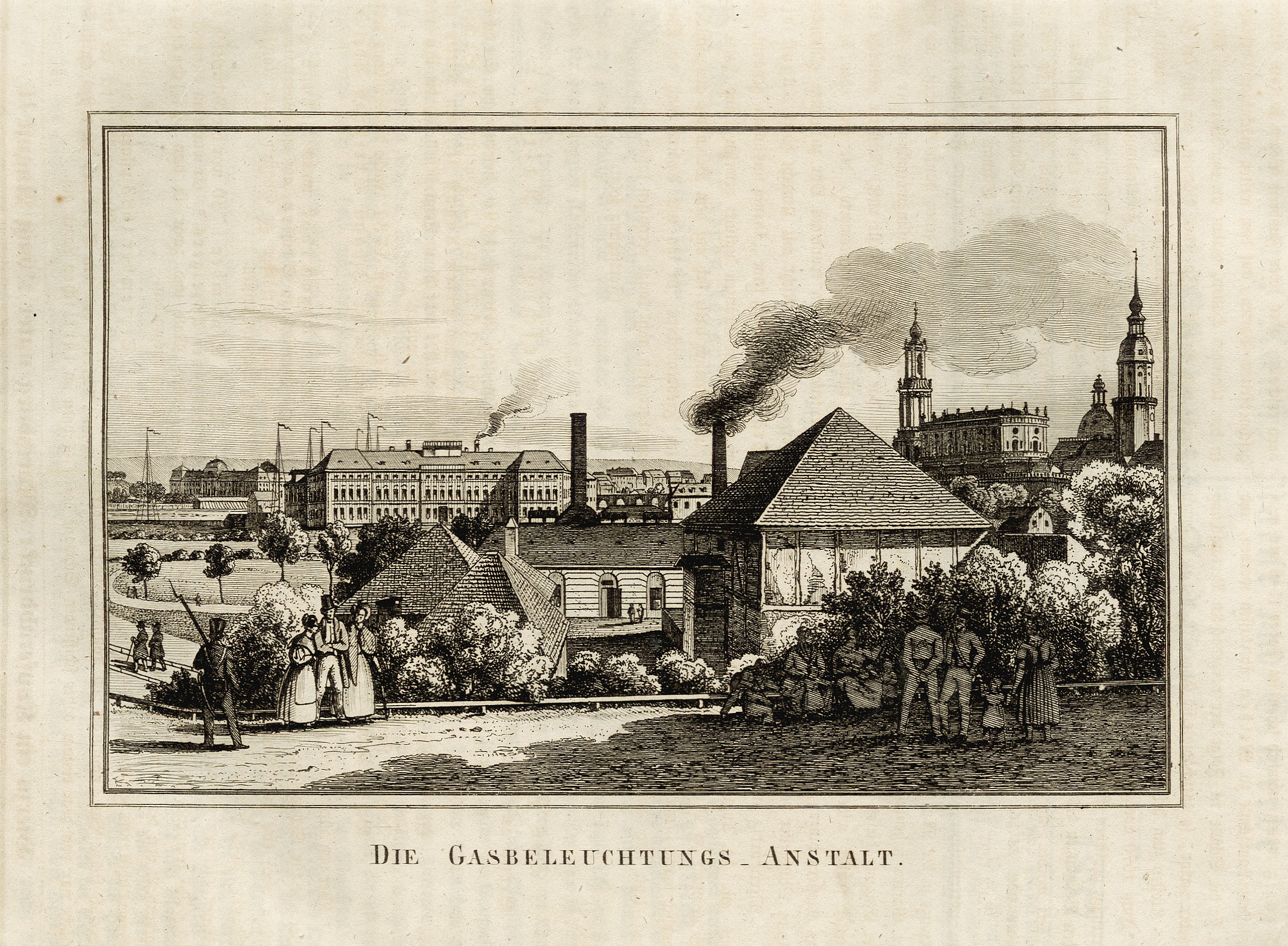 Zu Beginn des 19. Jahrhunderts sorgten Laternen für eine eher dürftige Beleuchtung der Dresdner Innenstadt. Angeregt durch die in London eingeführte Straßenbeleuchtung mit Steinkohlengas schlug der Geheime Rat dem sächsischen König die Erstellung eines Gutachtens über die Anwendbarkeit dieser Beleuchtungsart in Dresden vor. Nach dessen Befürwortung wurde das für die Straßenbeleuchtung zuständige Stadtpolizei-Kollegium im Juni 1816 beauftragt, sich mit Professor Lampadius in Freiberg in Verbindung zu setzen, der eine englische Abhandlung zu diesem Thema bearbeitet und übersetzt hatte. Das Stadtpolizei-Kollegium war eine Behörde, der Staatsbeamten und Ratsmitglieder angehörten.