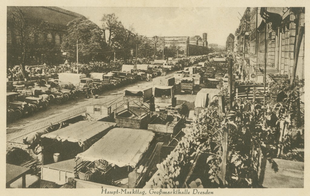 Wenn am Mittwoch vor dem ersten Advent der Dresdner Striezelmarkt eröffnet wird, dann beginnt die Zeit des Beschaulichen und Besinnlichen. Vor allem die Weihnachtsgrüße werden mit romantisierenden Abbildungen geschmückt. Bei der Archivalie des Monats Dezembers handelt es sich um eine solche historische Postkarte, die das weihnachtliche Dresden, insbesondere das gesellige Treiben auf dem Altmarkt veranschaulicht. Dass sich insbesondere zwischen den zahlreichen Händlern ein ganz anderes Bild ergab, berichtet eine Akte des Ratsarchivs.