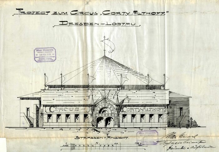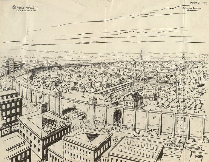 Die Entwurfszeichnungen zeigt das Stadtarchiv Dresden im Rahmen der Sonderausstellung „Verborgene Geschichte(n) aus dem Stadtarchiv“, die am 4. Dezember 2017 mit einer Vernissage eröffnet wurde.