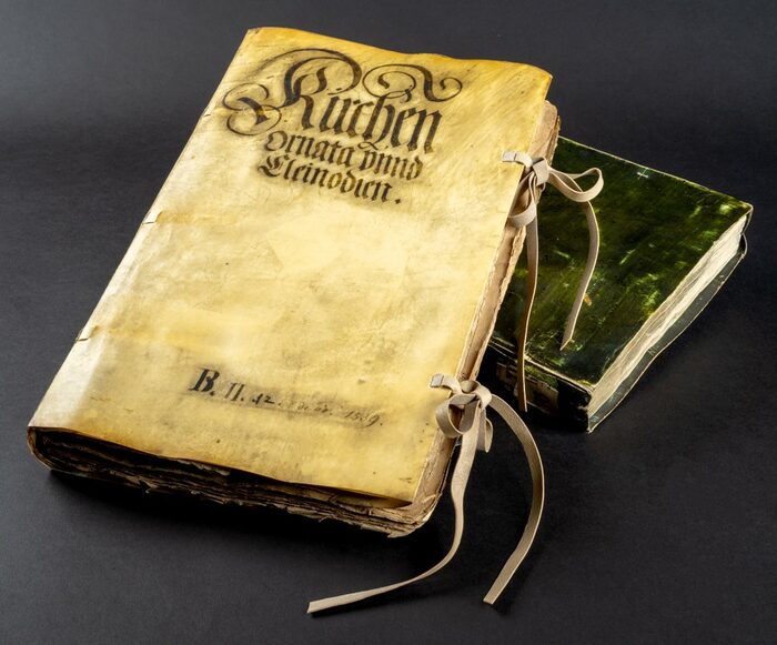 Im historischen Archiv des Dresdner Rates, im Bereich B, welcher seit 1534 überwiegend Vorgänge der städtischen Kirchen- und Schulangelegenheiten sowie die Verwaltung der Mittel des frühneuzeitlichen Sozialwesens dokumentiert, findet sich eine in helles Pergament mit ledernen Schleifen gebundene Akte mit dem Titel: ›Die Kirchenornata und Cleynodien im Landt zu Meißen belangendes. Dabey findt man waß der Rath zu Dreßden anfenglich Anno Domini 1539 nach Hertzog Georgen zu Sachssen sel.[igen] Thode zu sich in Verwahrung genommen (…)‹.