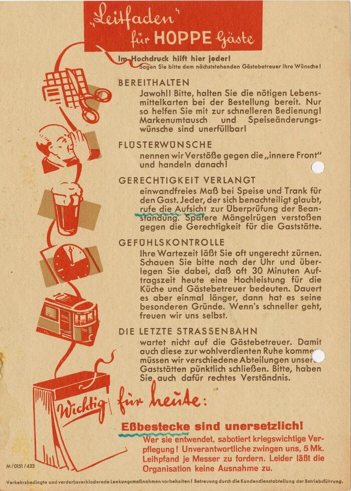 Die Archivale des Monats dokumentiert ausschnittsweise den handschriftlichen Lehrplan zum Thema „Kunstausdrücke“ und „Warenkunde“ aus dem Jahre 1907. Den auf der linken Seite verzeichneten deutschen Begriffen setzte Lößnitzer die französische Übersetzung gegenüber. Die Übersetzung vom Französischen in die deutsche Sprache verdeutlicht nicht nur die Lehrweise, sondern auch den Zeitgeist. Deutschlands Köche beanspruchten für sich im späten Kaiserreich eine ambitionierte kulinarische Kunst auf Augenhöhe mit Frankreich und ganz Europa. Nach Beginn des Ersten Weltkriegs hielt die patriotische Begeisterung Einzug in nahezu sämtliche Lebensbereiche wie auch in das Gastgewerbe und es kam zu einer regelrechten „Verdeutschungskampagne“ von französischen Begriffen. Unzählige Firmen und Geschäfte änderten nach Kriegsbeginn ihren Namen. Ob aus patriotischer Überzeugung oder aus Angst der Betreiber/-innen vor Ausgrenzung und Umsatzverlust hießen die einstigen „Boutiquen“ nun „Modegeschäfte“ und das „Cafe de Paris“ verwandelte sich in ein „Kaffeehaus Germania“.