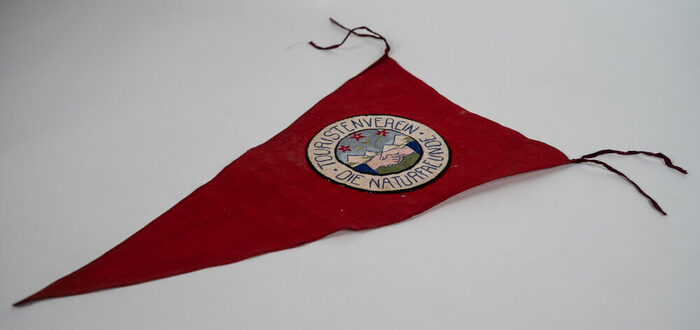 Von den Bemühungen der Stadtbewohner Schmutz, Enge und Elend zumindest zeitweise zu entfliehen, erzählt ein roter Stoffwimpel mit dem Emblem des Vereins der Naturfreunde im Stadtarchiv Dresden. Das im Gründungsjahr entworfene Logo zeigt zwei sich haltende Hände als Zeichen der Solidarität mit der Arbeiterbewegung sowie drei Alpenrosen im oberen Bildbereich.