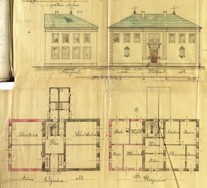 Schulneubauten stehen momentan in Dresden ganz oben auf der Agenda. Nicht nur Sanierungen der bestehenden Schulen sind notwendig, sondern mit steigenden Schülerzahlen muss neuer Raum zum Lernen geschaffen werden. So geschieht es gegenwärtig auch mit der 61. Grundschule „Heinrich Schütz“ in Rochwitz, die einen modernen Ersatzneubau an alter Stelle bekommt. Dafür musste allerdings das in die Jahre gekommene Gebäude weichen. Das alte Schulhaus wurde 1882 gebaut. Der Vorstoß der Gemeinde Rochwitz am Ende des 19. Jahrhunderts eine eigene Schule zu bauen, begründete sich mit der wachsenden Bevölkerung im Ort. Bis dahin gingen die Schülerinnen und Schüler der Gemeinde über den als Kirchweg ausgebauten Feldweg nach Bühlau zum Lernen. Der Wunsch des Ortvorstehers eine eigene Schulgemeinde zu gründen, fußte auch darauf, den Kindern den längeren Weg nach Bühlau zu ersparen. Demzufolge beantragte der Gemeindevorsteher Carl Eisold im Jahr 1882 bei der königlichen Schulinspektion die „Ausschulung“ der Rochwitzer Schülerinnen und Schüler aus der Schulgemeinde Bühlau. Die Genehmigung wurde von der Behörde erteilt. Im Stadtarchiv Dresden sind Akten erhalten, die den Weg der Rochwitzer zur eigenen Schulgemeinde dokumentieren. Für die zwei gebildeten Klassen aus 67 Schülerinnen und Schülern stand ein großer geteilter Klassenraum im Erdgeschoß zur Verfügung. Im Obergeschoss des neuen Gebäudes bezog der Lehrer seine Wohnung.