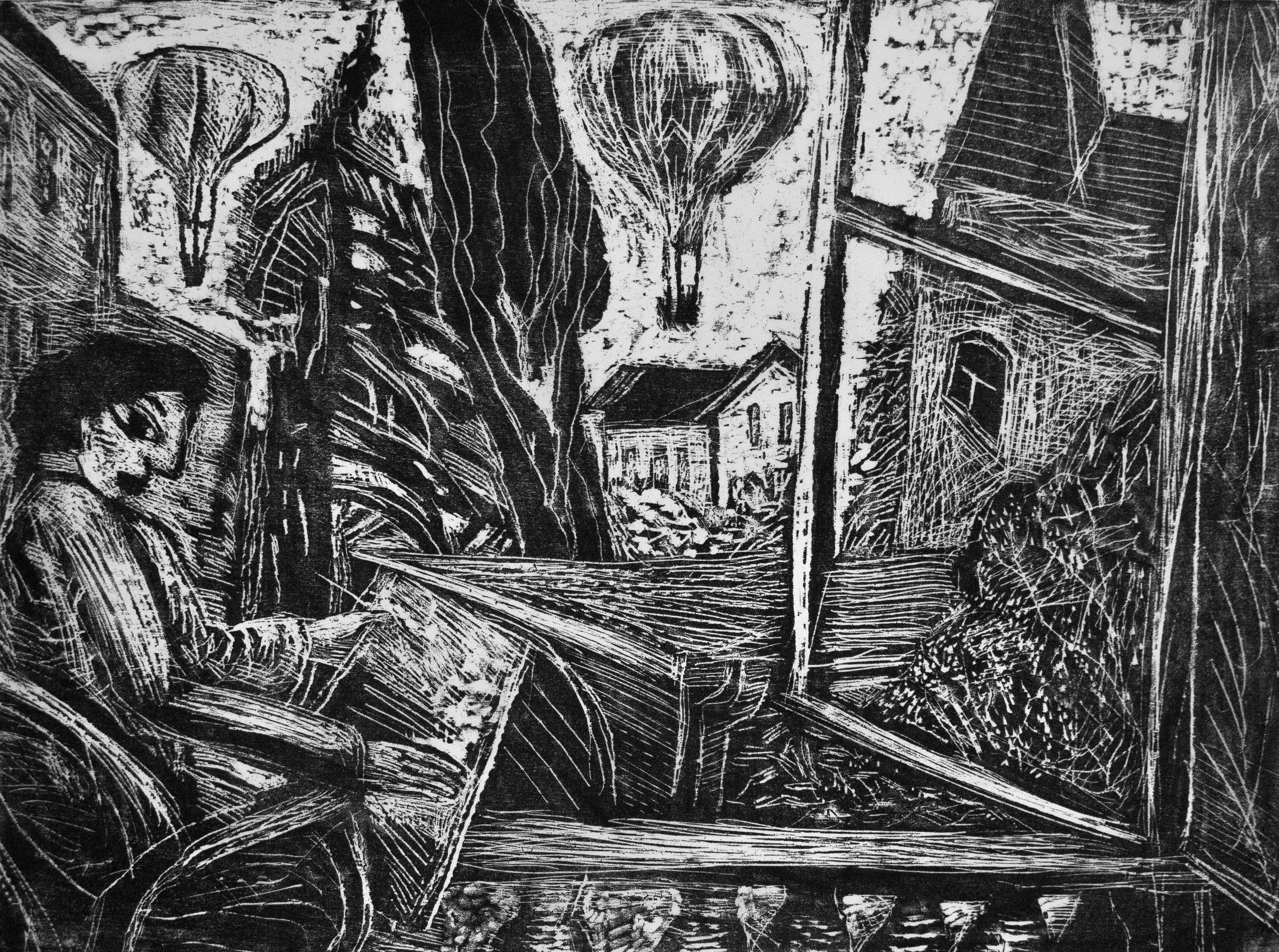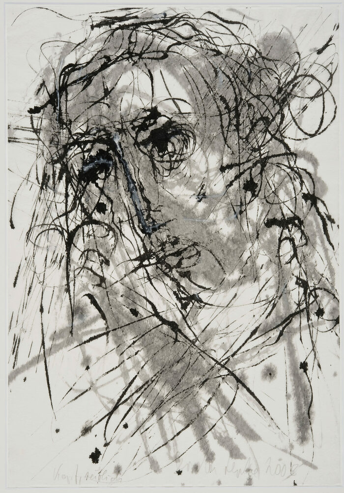 Darauf nimmt Bärbel Kuntsche, die seit vielen Jahren jeden Tag mit einem Selbstporträt beginnt, direkt Bezug. Ihre Selbstspiegelungen entsprechen sensibel ihrer jeweiligen Stimmung: kritisch oder empfindsam, freudvoll oder traurig und nachdenklich. Sie weiß um die Polarität von Stille. Die Stille in ihren Arbeiten ist auch mit Temperaturen verbunden, von warm bis kalt – wie zwischen dem Schwarz und Weiß ihrer Holzschnitte der gesamte farbige Kosmos verborgen ist. Man spürt die Sehnsucht, auch in den Gärten und Fensterausblicken, die Balance in einer Welt der Ungewissheiten nicht zu verlieren.