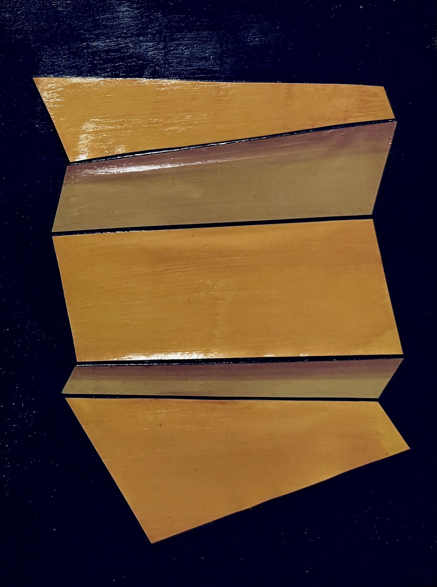 „Ich trage unterschiedlich breite, mehr oder weniger transparente Klebebänder oder -folien neben- und übereinander auf. Im Arbeitsprozess dient mir die Erinnerung von etwas Gesehenem oder anders Erfahrenem als Basis, aus der ich zuerst eine Essenz bilde, eine Abstraktion. Im weiteren Verlauf lasse ich die Arbeit immer mehr zum Experiment werden, in der meine Bindung an das Material der Folien in die Bildfindung durch das Spiel des Überlagerns und des Wiederherausnehmens einfließt. So lasse ich abstrakte Farb- und Flächenkompositionen entstehen, die unterschiedliche Themen wie Symmetrie, Raum, Körper, Gegensatz und Unschärfe integrieren.“