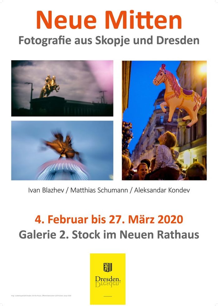 Die Ausstellung zeigte Fotografien von Ivan Blazhev, Aleksandar Kondev und Matthias Schumann aus verschiedenen Serien, die bei ihren Aufenthalten in der jeweiligen Partnerstadt bzw. in ihrer Heimatstadt aus Anlass des 50-jährigen Bestehens der Städtepartnerschaft zwischen Dresden und Skopje entstanden sind. Ivan Blazhev und Aleksandar Kondev leben in der mazedonischen Hauptstadt Skopje, Matthias Schumann in Dresden.