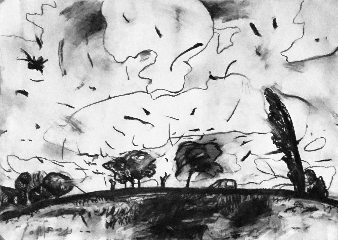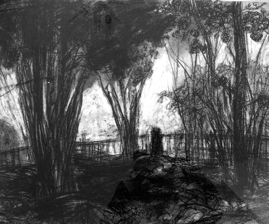 Elisabeth Richter: „Vor allem im ländlichen Raum finde ich meine Motive und Anregungen. Das Zeichnen unmittelbar vor der Natur erschließt mir eine Vielzahl von Ansatzpunkten und Betrachtungsmöglichkeiten, um im Atelier vor allem großformatige Blätter zu erarbeiten. Beim Arbeiten lege ich Wert auf eine spontane, lebendige Linienführung. Das Spiel von Weiß zu Schwarz über Grau spannungsvoll auszuleben und so das Gesehene, Empfundene, durch mich Fließende auf den Bildträger zu bringen, ist bei mir ein Eintauchen in eine andere Welt, eine andere Daseinsebene.“