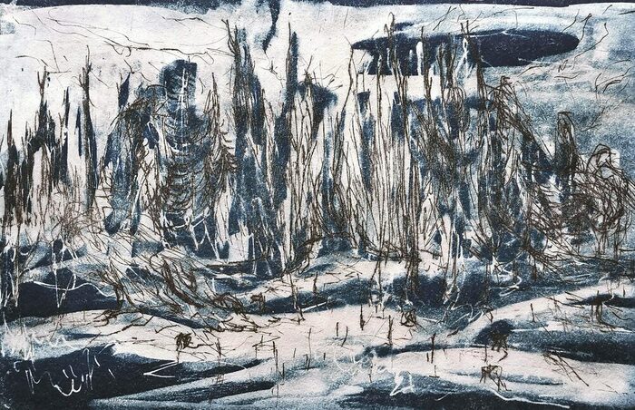 Die erste Ausstellung der Jahresreihe „Inmitten der Natur“ der freien und offenen Künstlergruppe „Pleinair“ zeigte Arbeiten von Sylvia Fenk, Gerrit Höfig, Franziska Kunath, Mirjam Moritz, Maja Nagel, Anita Rempe und Elisabeth Richter. In dieser Ausstellung ging es um das Übertragen von Gesehenem und Erlebtem: Am Anfang vieler künstlerischer Ausbildungswege stand das Naturstudium. Landschaften wurden studiert und die in der Natur vorgefundenen Rhythmen horizontaler und vertikaler Linien vergleichsweise unverfälscht als Kompositionsgerüst in eine grafische oder malerische Arbeit übertragen. Durch die intensive Art der Aneignung wurden solche Rhythmen verinnerlicht und in zunehmend freieren inhaltlichen Auseinandersetzungen und künstlerischen Arbeitsweisen aus dem Inneren genutzt und in eigenständigen Kompositionen zur Entfaltung gebracht. Nach Phasen von Loslösung kann mit geschultem Blick und gewachsener Erfahrung die Rhythmik der Natur und Landschaft neu betrachtet und befragt werden.