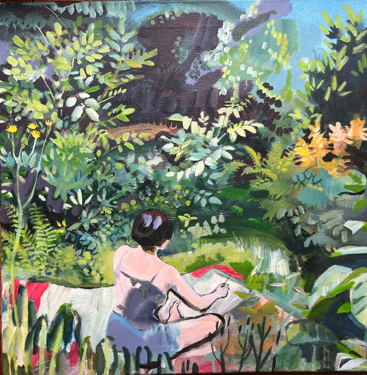 Anna Gorsleben: „Meine Arbeit ergibt sich aus Erlebnissen in der Natur. Die Welt ist Fülle. Eine schier unermessliche Vielfalt von Formen und Leben unter wechselndem Licht und Dunkel, durchdrungen von Duft, Klängen und dem Wirken der Elemente. Indem ich mich mit meiner Wahrnehmung dieser Fülle gegenüberstelle, wachsen mir von dort Ideen zu, die ich in Bilder übersetze. Dafür muss ich mich aussetzen, wählen, probieren und in Formen und Farben übertragen, was mich anspricht. Meine Bilder und Zeichnungen entstehen dann entweder direkt in der Natur oder später im Arbeitsraum.“