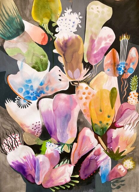 Susanne Haase: „Derzeit konzentriert sich meine Zeichentechnik auf den Einsatz von Tusche und anderen wasserbasierten Medien. Dabei lege ich unterschiedliche Farben und Formen übereinander, um Tiefe und Textur zu erzeugen, was häufig zu organischen und abstrakten Bildern führt. Dieser Ansatz lässt Wasser und Farbe auf natürliche Weise miteinander interagieren, wodurch organische Formen und Linien auf dem Papier entstehen. Auf diese Weise kann ich ein spontanes Gefühl in den Bildern erzeugen und etwas von der Bewegung des Moments einfangen.“