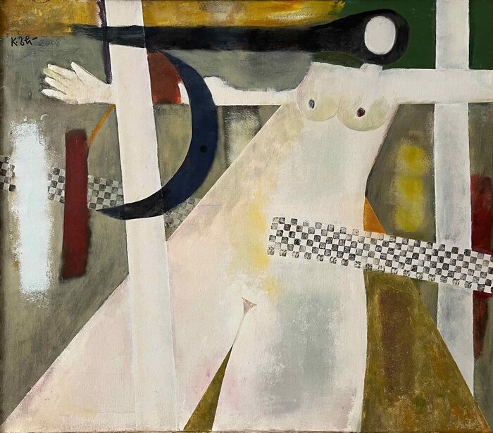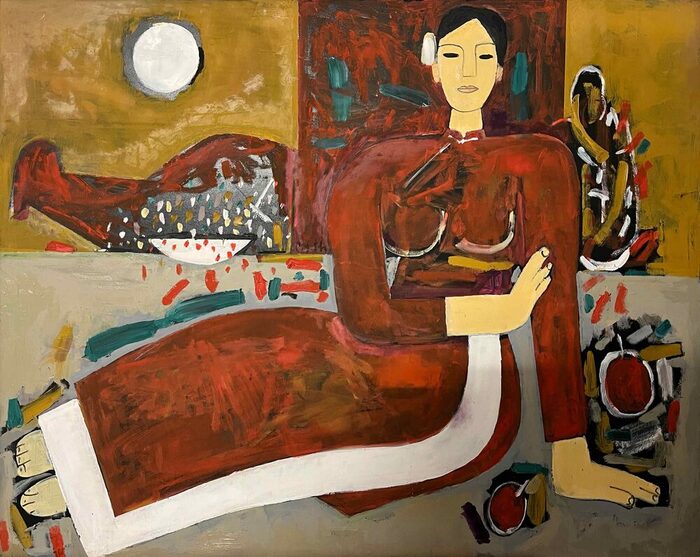 Công Thành Lê (1931–2019) zählt zu den prägenden Künstlern der Sozialistischen Republik Vietnam. 2020 wurde ihm posthum der Ho-Chi-Minh-Preis verliehen. Seine Skulpturen und Gemälde kreisen um die weibliche Figur: als Mutter, als Sinnbild von Schönheit, Symbol von Stärke und Ursprung. Inspiriert von der Kunst der Zivilisation der Cham und den matriarchalischen Gesellschaftsformen Vietnams bis ins 15. Jahrhundert entwickelte er eine Bildsprache, die weibliche Würde und Eigenständigkeit ins Zentrum stellt. Seine Ehefrau Kim Thái Nguyễn (*1943), die an der Hochschule der Bildenden Künste Hanoi studierte, schuf in den Jahren des Staatssozialismus großformatige Frauenporträts. In Zeiten materieller Knappheit griff sie zu verfügbaren „armen“ Materialien: Styroporplatten, gebrauchte Fahnenstoffe oder industriell produzierte Lackfarben ersetzten teure Ölfarben und Leinwand. Aus diesen Einschränkungen entwickelte sie eine unverwechselbare Ästhetik, die Frauen als selbstbewusste Musikerinnen, Künstlerinnen und Mütter sichtbar machte.