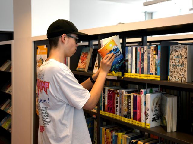 Vier junge Leute hatten die Gelegenheit, die Teams der Jugend-, Kinder- und Musikabteilung in der Zentralbibliothek kennenzulernen. Das facettenreiche Programm umfasste eine "Bibo-Rallye" und einen "Bookslam". Zusätzlich erlaubten Besuche im Service oder in der Sortieranlage einen Blick hinter die Kulissen. Beim Rückordnen von Büchern und Kontrollieren der Brettspielteile war Konzentration gefordert, bei einer kleinen Recherche-Übung auch etwas systematisches Verständnis.