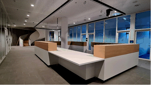 Der Tresen für die Bürgerberatung steht bereits. Die Anlaufstelle für die Dresdnerinnen und Dresdner befindet sich im Erdgeschoss des Stadtforums und wird Montag bis Freitag von 8 Uhr bis 18 Uhr geöffnet sein. Hier kann man künftig seinen Anwohnerparkausweis beantragen oder sich dazu beraten lassen. Wer eine öffentliche Fläche nutzten möchte, ist hier ebenso willkommen wie Bürgerinnen und Bürger, welche Auskünfte aus einem Kataster oder Grundbuch brauchen. Auch für Akteneinsichtnahmen stehen Räumlichkeiten zur Verfügung. Außerdem können bei der Bürgerberatung auch Bauanträge direkt abgegeben werden.