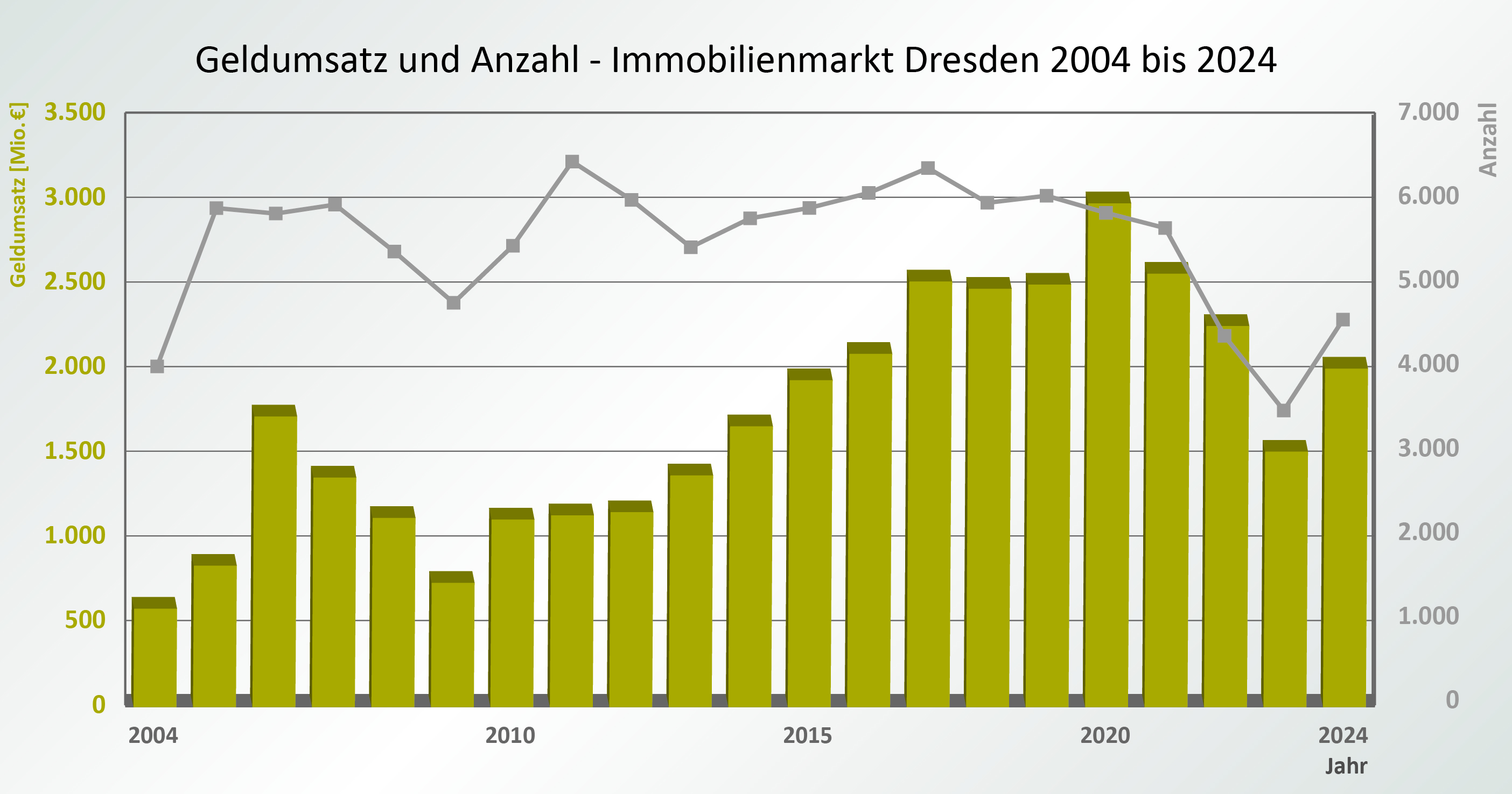 Der Immobilienmarkt der Landeshauptstadt Dresden ist 2024 von steigender Nachfrage und mehr Vertragsabschlüssen geprägt. Das geht aus den vorläufigen Eckdaten zur Preis- und Umsatzentwicklung hervor, die der Gutachterausschuss für Grundstückswerte der Landeshauptstadt Dresden für 2024 vorlegt. Damit ist das Niveau von 2022 wieder erreicht. Die Preise haben sich auf der Höhe des Vorjahres stabilisiert. Der ausführliche Grundstücksmarktbericht wird Mitte April veröffentlicht.