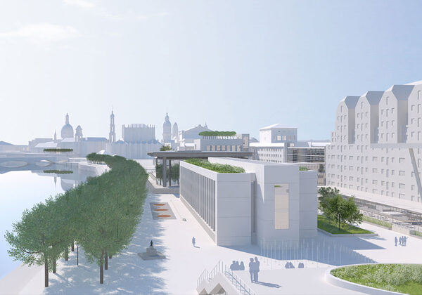 Der Freistaat Sachsen beabsichtigt, den Sächsischen Landtag an der Elbe vor dem Erlweinspeicher zu erweitern. Um einen funktionalen und gestalterischen Anschluss zum Bestandsgebäude des Landtages aus dem Jahr 1991 bis 1994 vom Büro Peter Kulka zu sichern, wurde dieses Büro auch mit der Planung zur Erweiterung beauftragt. Um die wichtigen Sichtbeziehungen zwischen Brühlscher Terrasse, Marienbrücke und den vielen Baudenkmälern an der Elbe zu erhalten, empfahl die Gestaltungskommission dem Planungsbüro, auf hohe Gebäude zu verzichten und tiefere bauliche Varianten zu untersuchen. In der folgenden Sitzung gab es eine Übereinkunft, die Erweiterung als untergliederten dreigeteilten Gebäuderiegel mit drei Geschossen auf einem erhöhten Sockel zu errichten. Auf dieser Grundlage wurde die Fassadengliederung, die Materialität und die Wirkung der umgebenden öffentlichen und halböffentlichen Freiräume zur Elbe und zu den benachbarten Gebäuden vertieft ausgearbeitet.