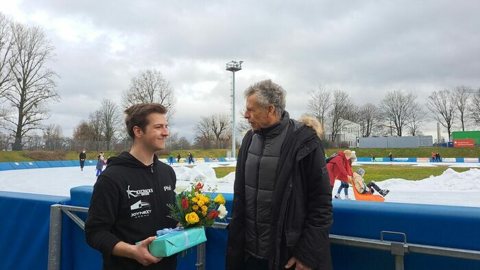 Der 20-jährige Philip aus Dresden war am Freitag, 24. Februar 2023, der 100.000 Besucher der JOYNEXT Arena in der Eislaufsaison 2022/2023. Dreimal pro Woche kommt er mit den Dresdener Eiscracks auf die größten Eisflächen der Landeshauptstadt. Als Dankeschön gab es eine 10er-Karte zum Eislaufen, die Philip noch in dieser Saison ablaufen möchte.