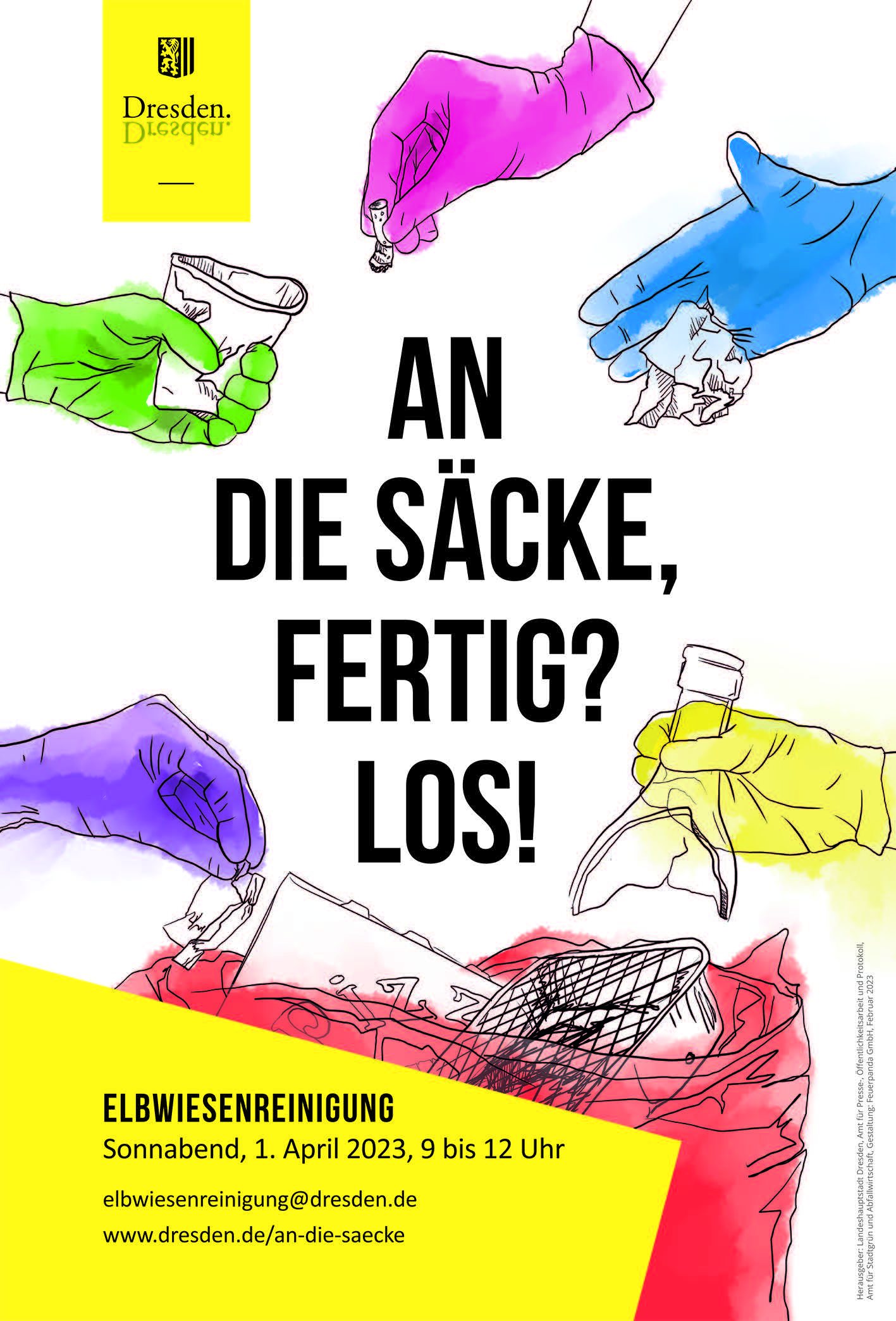 Ein neues City-Light-Plakat an Dresdens Straßen verkündet es: Am Sonnabend, 1. April 2023, startet die Landeshauptstadt mit der Elbwiesenreinigung in die diesjährige Putzsaison. Helferinnen und Helfer, die sich kurzfristig ohne Anmeldung dazu entschließen, können mit eigenen Handschuhen und Säcken die Aktion unterstützen. Das Einsatzgebiet erstreckt sich über 30 Kilometer auf beiden Seiten der Elbe von Cossebaude bis Hosterwitz/Pillnitz.