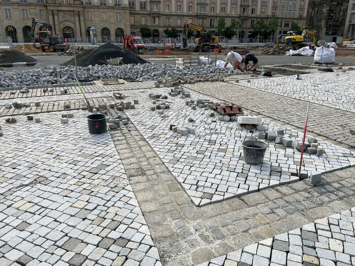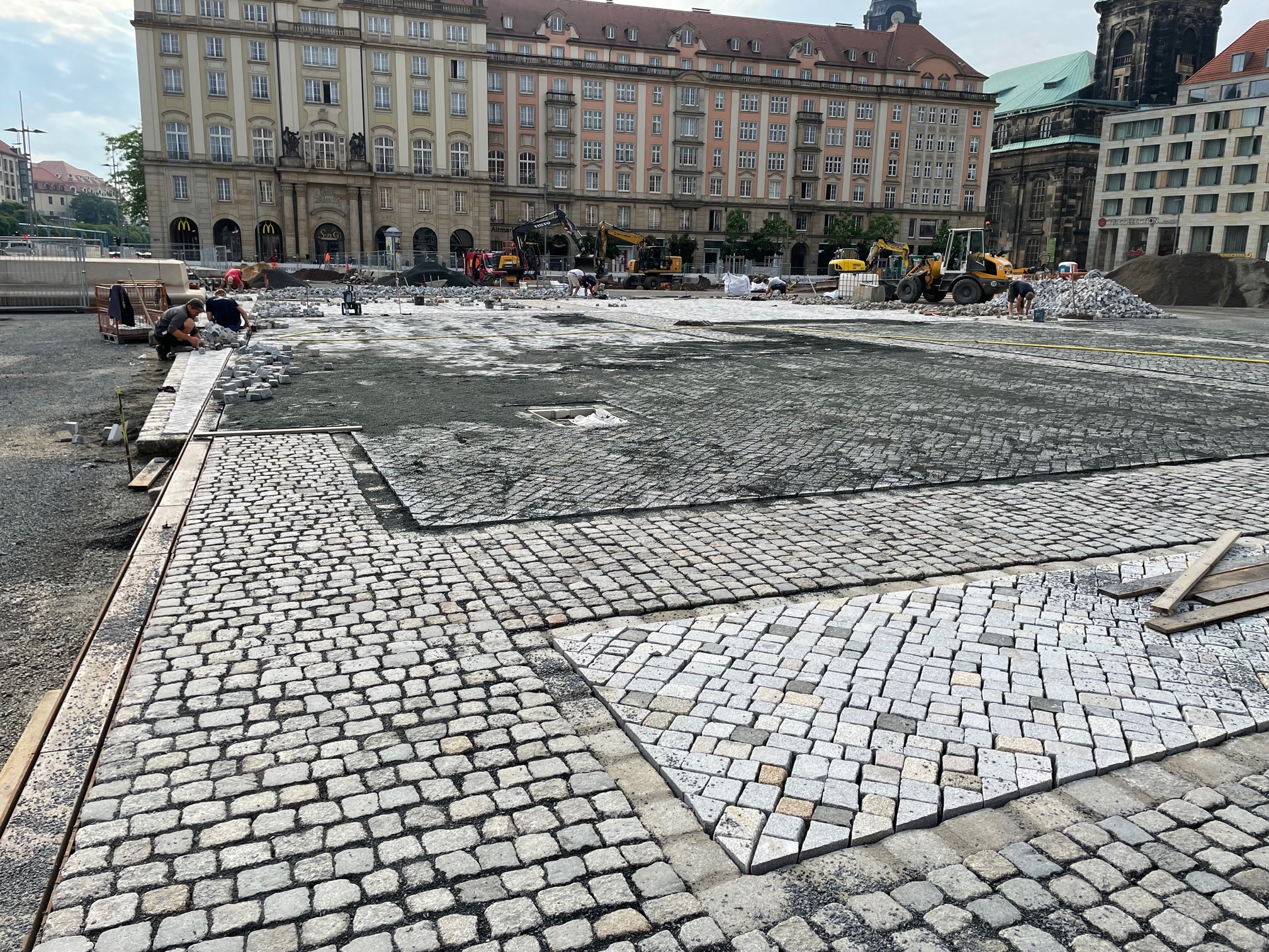 Umriss des mittelalterlichen Rathauses entsteht auf der Altmarkt-Fläche