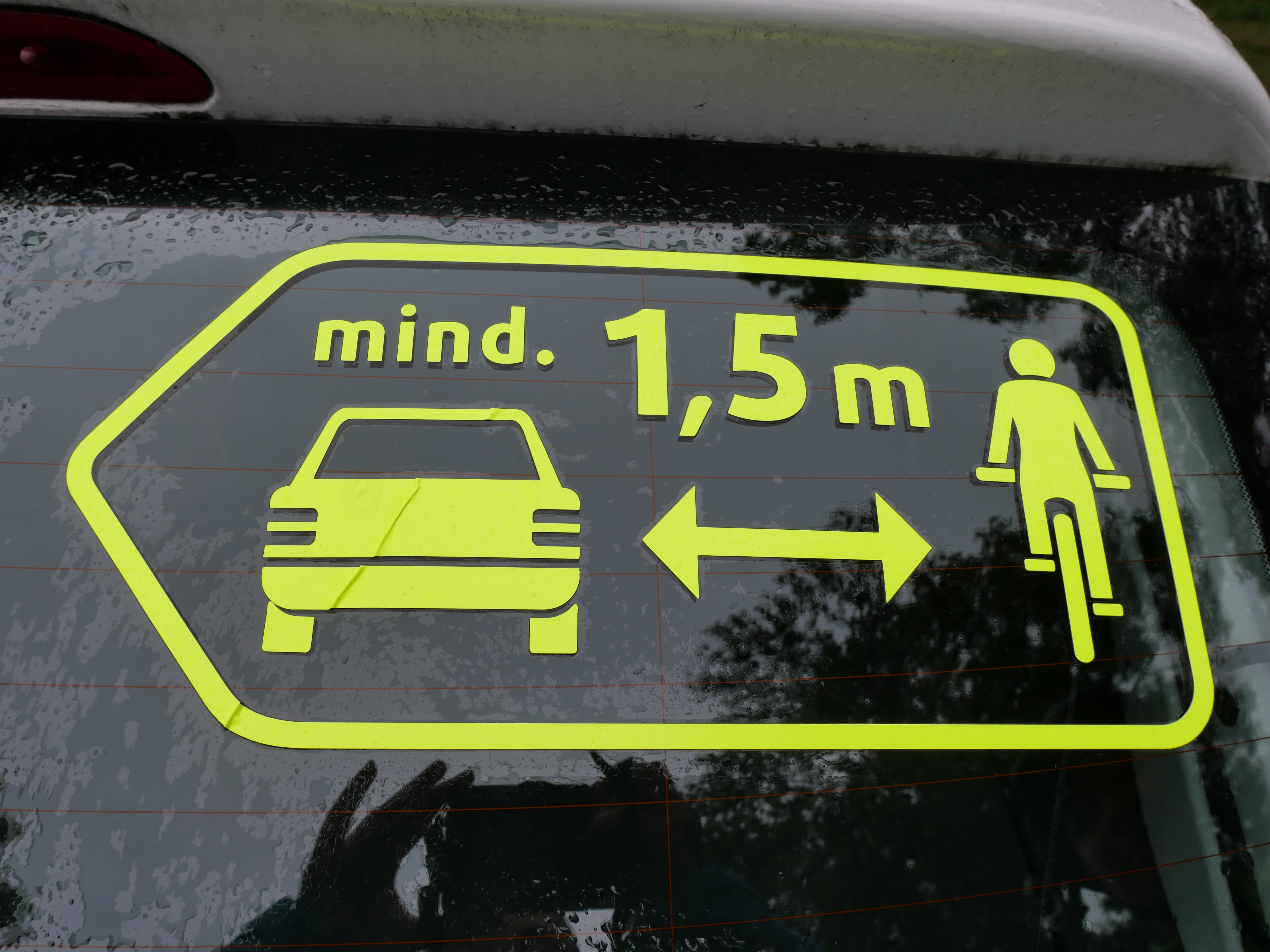 Die Einsatzwagen der Polizeidirektion Dresden sind schon seit einigen Jahren mit diesen Aufklebern versehen. Nun zieht die Stadt Dresden nach und stattet rund 500 Fahrzeuge mit den Aufklebern aus. So werden unter anderem die Fahrzeuge von Ordnungsamt, Amt für Stadtgrün und Abfallwirtschaft oder Straßen- und Tiefbauamt zu fahrenden Botschaftern für einen respektvollen und sicheren Umgang aller Verkehrsteilnehmer.