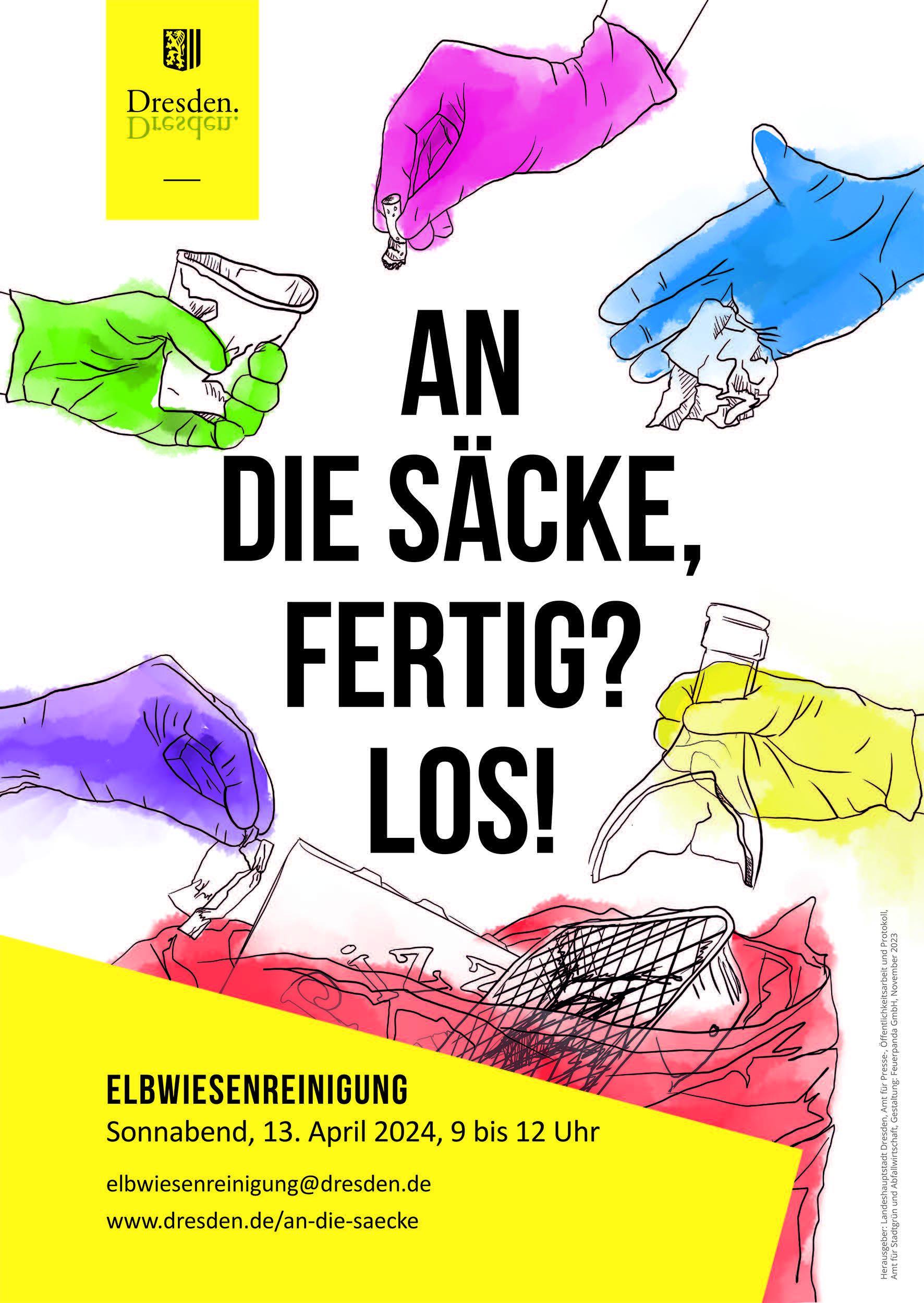 Ab sofort sind Anmeldungen für die Elbwiesenreinigung am Sonnabend, 13. April 2024 möglich über das Onlineportal unter www.dresden.de/an-die-saecke.