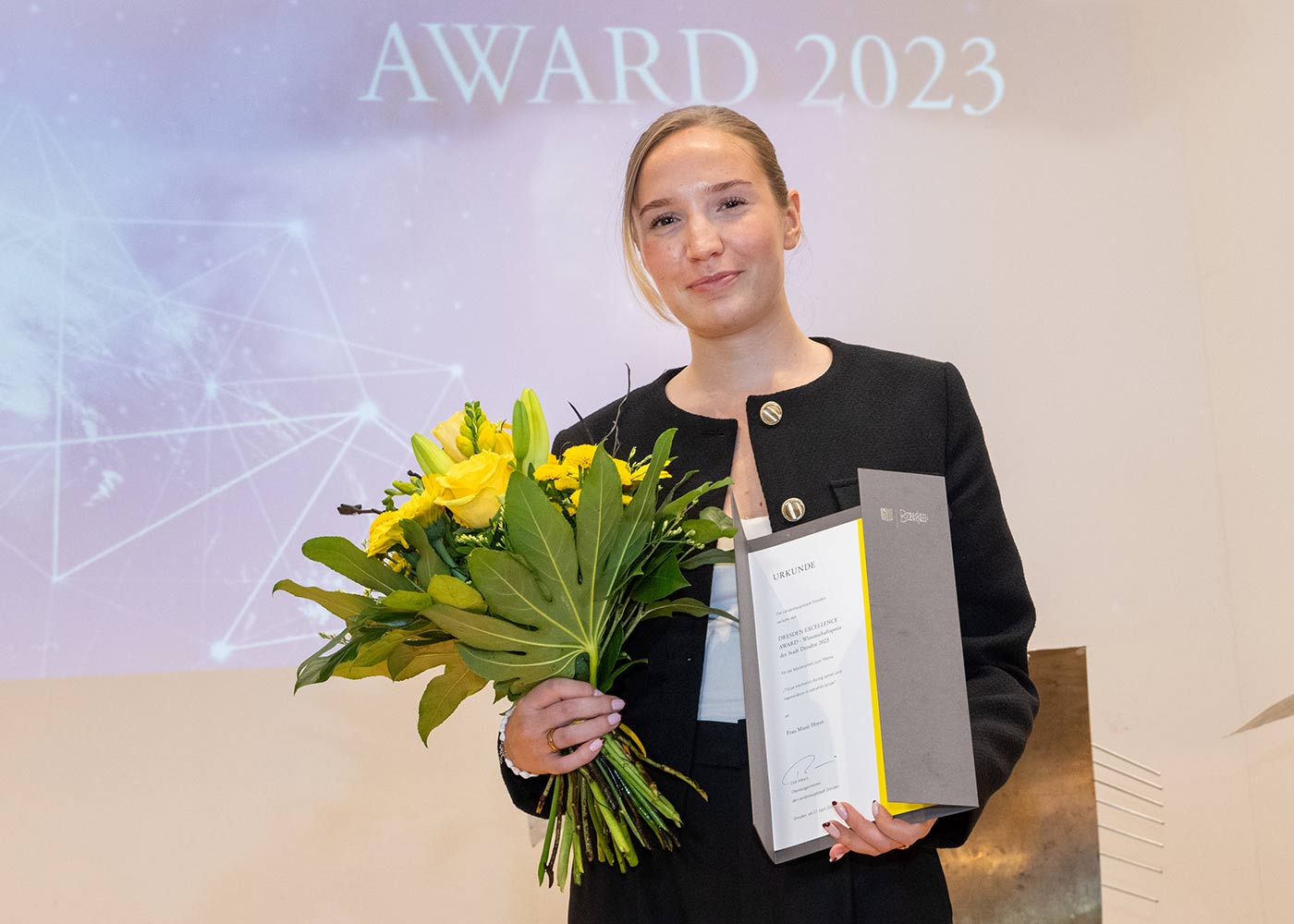Oberbürgermeister Dirk Hilbert„Dass Kultur und Wissenschaft gar kein Widerspruch sind, beweist gerade der diesjährige Award. Erstmals prämieren wir eine Choreografie und damit eine Einreichung aus dem Studienfach Tanz. Wir schlagen die Brücke zwischen der Wissenschaftsstadt und der Kulturstadt Dresden – beide exzellent. Diese besondere Mischung ermöglicht Dresden auch eine dynamische Wirtschaftsentwicklung. Unternehmen finden hier ein einzigartiges Ökosystem aus Universitäten, Forschungsinstitutionen und ihren Branchen-Netzwerken sowie einmalige Kultur und Natur. Deshalb haben sich Weltmarkt- und Technologieführer wie TSMC, Bosch oder Infineon im globalen Wettbewerb für den Standort Dresden entschieden.“