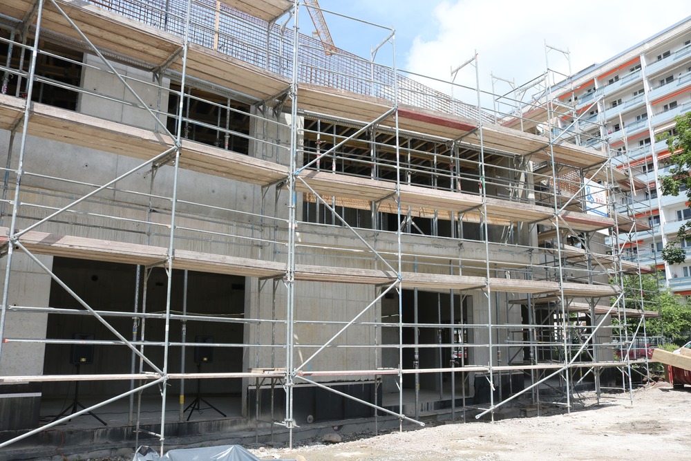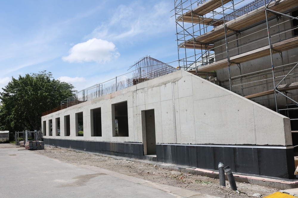Der Rohbau des neuen Stadtteilhauses Johannstadt steht. Die letzte Deckenplatte wurde gesetzt und Stadt, Bauunternehmen und zukünftige Nutzer feiern am Freitag, 31. Mai 2024, 13 Uhr das Richtfest an der Pfeifferhannsstraße 11. Baubürgermeister Stephan Kühn schlägt den letzten Nagel ein und der Geschäftsführer der Rohbaufirma Raue Bauunternehmung GmbH, Richard Raue, spricht den Richtspruch.