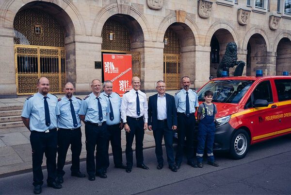 Zuwachs für den Fuhrpark der Stadtteilfeuerwehr Rockau im Schönfelder Hochland: Die 44 Kameradinnen und Kameraden um Wehrleiter Andrè Thämelt erhielten am Mittwoch, 12. Juni 2024, im Beisein von Sicherheitsbürgermeister Jan Pratzka und dem Leiter des Brand- und Katastrophenschutzamtes Dr. Michael Katzsch einen Mannschaftstransportwagen. Bis zu sechs Feuerwehrleute können damit zum Einsatzort fahren.