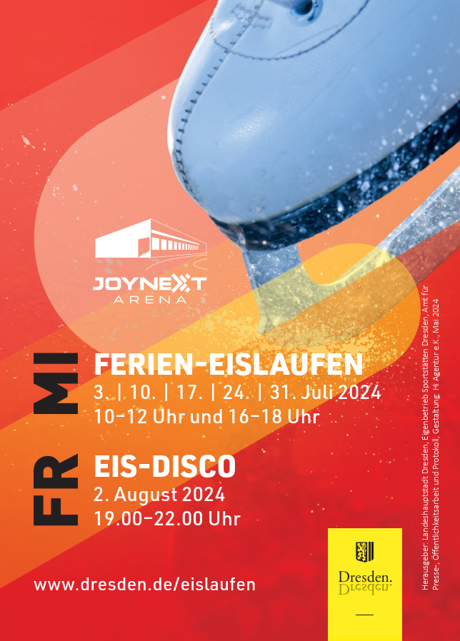 Ab Montag, 1. Juli 2024, geht die Trainingseishalle der JOYNEXT Arena in den Sommer-Betrieb. Vom 3. bis zum 31. Juli ist sie jeweils mittwochs von 10 bis 12 Uhr und 16 bis 18 Uhr zum Ferien-Eislaufen geöffnet. Inhaberinnen und Inhaber eines aktuellen Ferienpasses erhalten mit dem Coupon in Begleitung eines vollzahlenden Erwachsenen einmalig kostenfreien Eintritt.