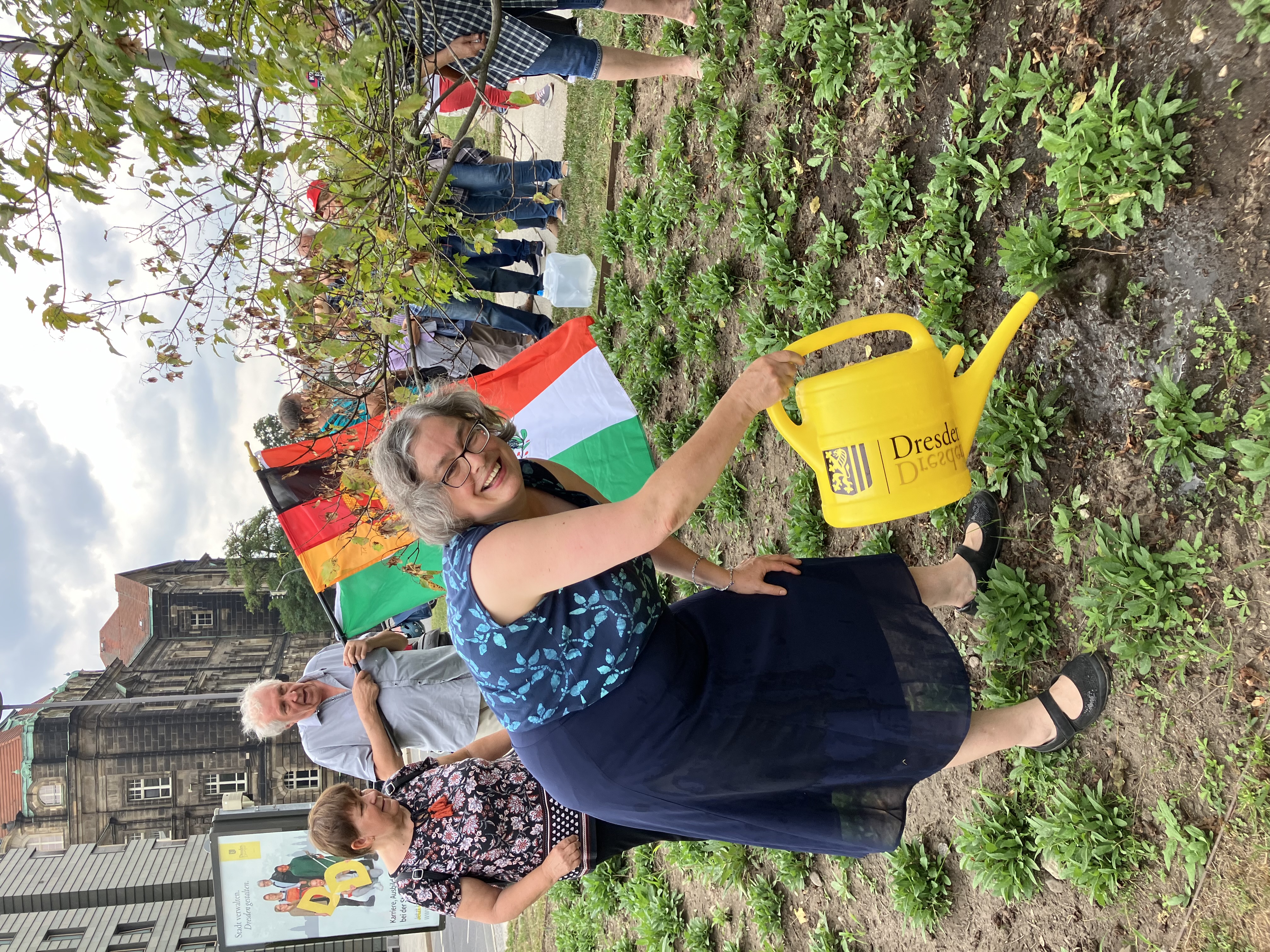 Carolaplatz: Gießen des Erinnerungsbaumes für ungarische Vertragsarbeiter