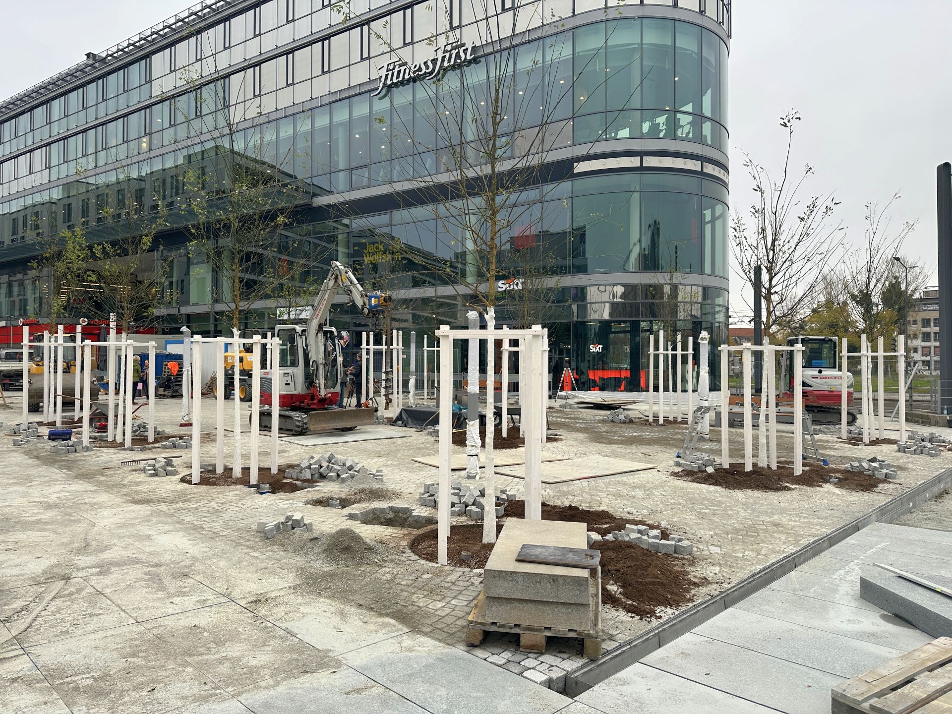 In der ersten Novemberwoche 2024 werden zwischen Kugelhaus und dem Gebäude Prager Spitze zwölf große Japanische Schnurbäume gepflanzt. Seit August 2024 wurde das vormals asphaltierte Areal mit Granitplatten und Pflaster umgestaltet und die Baumgruben hergestellt. Die Bäume sollen im Sommer Schatten spenden und den Aufenthalt in der überwärmten Innenstadt angenehmer machen.
