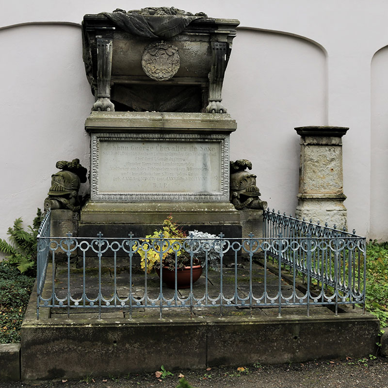 Vor 250 Jahren verstarb Generalfeldmarschall Johann Georg von Sachsen, illegitimer Sohn Augusts des Starken und der Fürstin Lubomirska. Er war ab 1763 Oberkommandierender des sächsischen Heeres Gouverneur von Dresden. 1763 zum Generalfeldmarschall ernannt, leitete er die Reorganisation des sächsischen Heeres. 1764 beauftragte Johann Georg von Sachsen den Baumeister Krubsacius mit der Wiederherstellung und Erweiterung des beschädigten Kurländer Palais in Dresden. 1764 erwarb er den Zinsendorfschen Garten in einem Teil des heutigen Blüherparks in Dresden und ließ sich dort von Krubsacius ein prächtiges Rokoko-Palais errichten. Sein Grab befindet sich auf dem Alten Katholischen Friedhof.