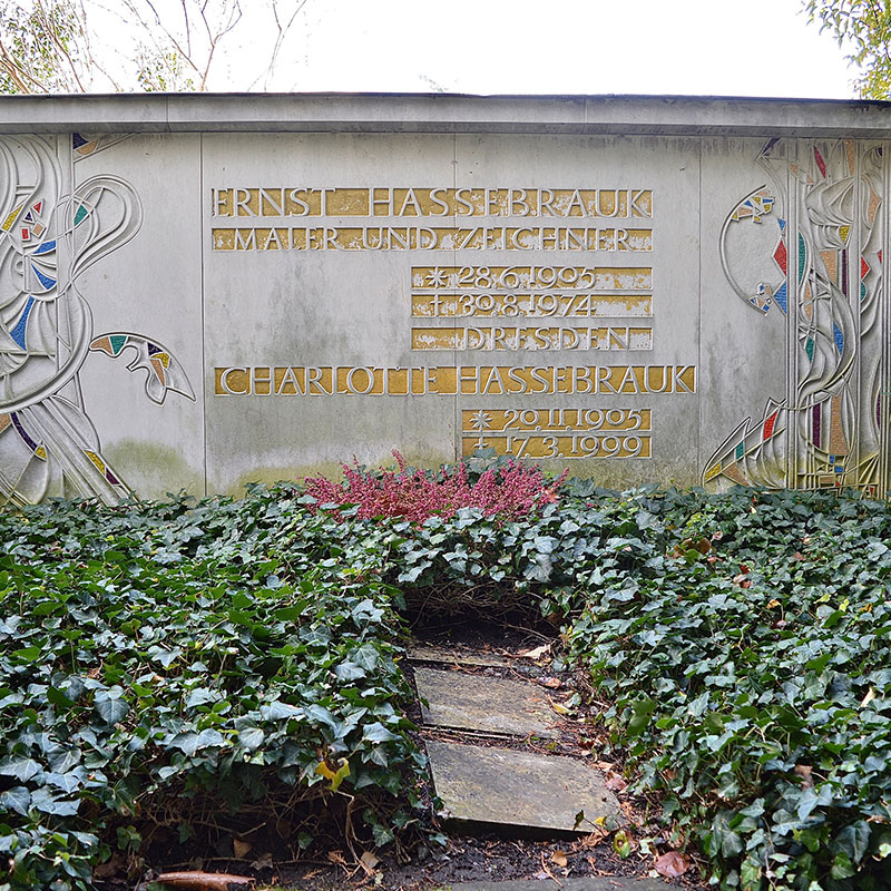 Der Maler und Grafiker Ernst Hassebrauk war bekannt für seine Porträts, Akte und figürlichen Kompositionen, die zwischen Realismus und expressiver Abstraktion angesiedelt sind. Nach seiner Ausbildung an der Kunstakademie Dresden prägte er die Kunstszene der Weimarer Republik und der Nachkriegszeit. Während des Nationalsozialismus blieb er weitgehend unauffällig. Nach 1945 erlangte er Anerkennung, insbesondere in der DDR, und widmete sich vermehrt der grafischen Kunst. Hassebrauk, der in Dresden lebte und arbeitete, hinterließ ein Werk, das für seine klare Formensprache und menschliche Ausdruckskraft geschätzt wird. Sein Grab befindet sich auf dem Loschwitzer Friedhof.