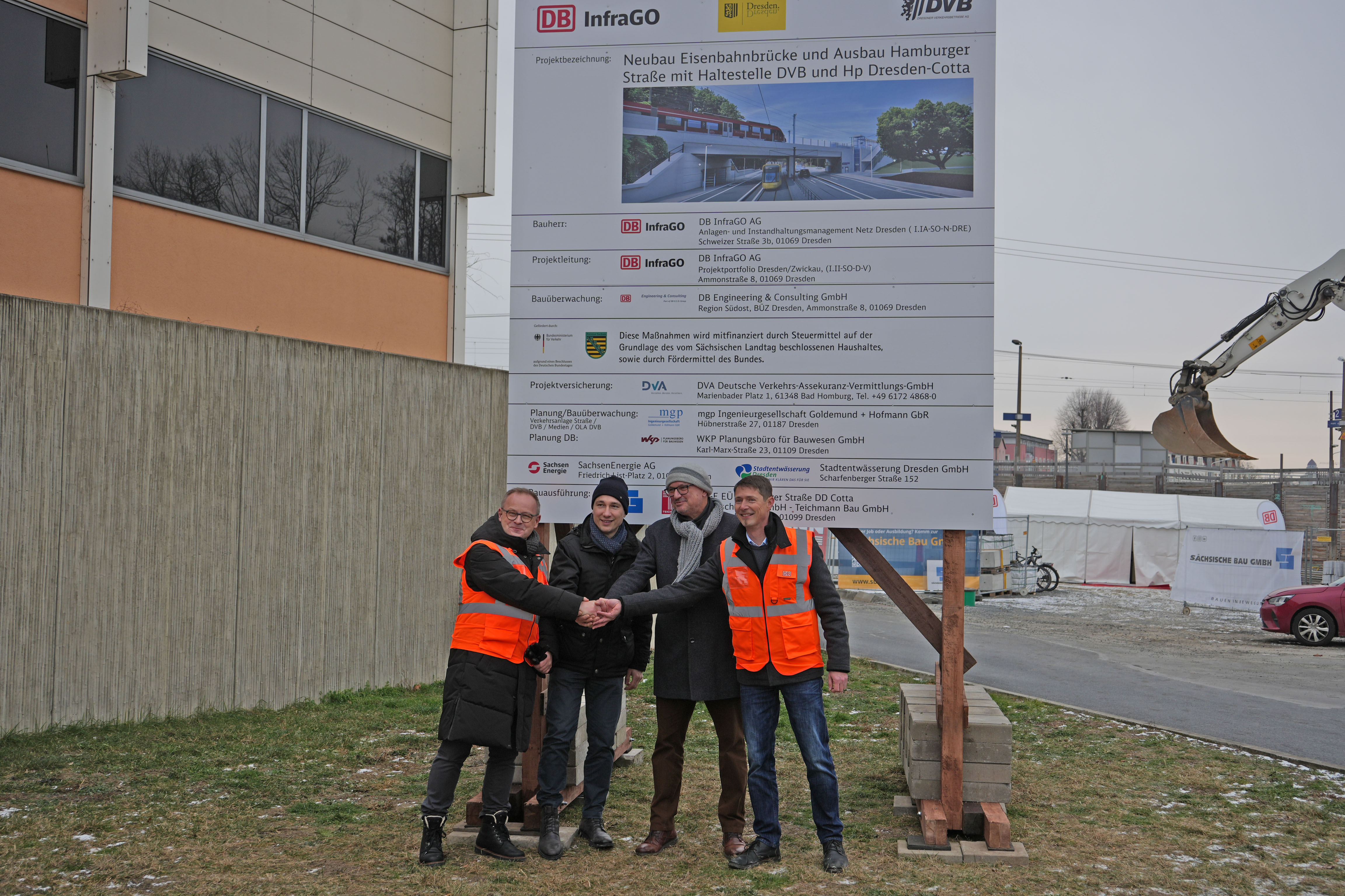 Ulrich Mölke, Projektleiter bei der DB„Mit dem gemeinsamen Projekt in Dresden-Cotta leisten wir einen wichtigen Beitrag für eine zukunftsfähige und nachhaltige Mobilität in Dresden. Durch die Verbindung des Haltepunktes vom Regionalverkehr mit der Haltestelle für die Straßenbahn unter der Eisenbahnbrücke entsteht ein neuer Verknüpfungspunkt für den öffentlichen Verkehr. Wir schaffen mehr Platz für den Straßenverkehr, bauen den Knotenpunkt komplett barrierefrei aus und verlängern die Bahnsteige für modernere Züge. Die Leistungsfähigkeit der gesamten Infrastruktur wird verbessert. Wir freuen uns auf dieses Projekt.“
