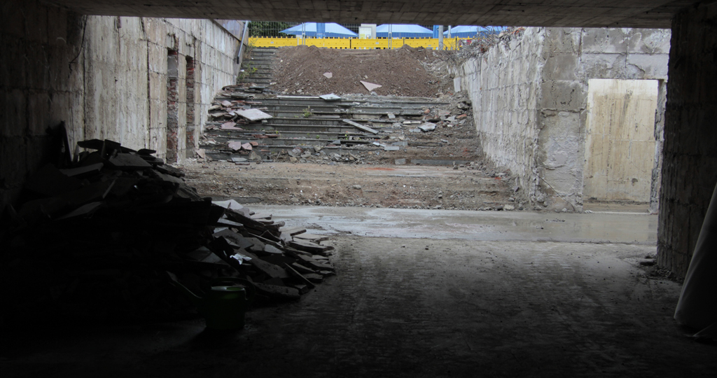 Der Tunnel am Neustädter Markt wird verfüllt. Die Arbeiten begannen am 18. Juli 2016. Bauleute entfernen gerade die letzten Zwischenwände, Verkleidungen und Ausrüstungen. Danach verlegen sie eine Lehrrohrtrasse, verfüllen den Tunnel und bauen eine ebenerdige Fußgängerquerung. Zum Schluss bauen sie die Treppenaufgänge ab und richten die Außenanlagen her. Es ist vorgesehen, die Arbeiten im Dezember 2016 abzuschließen.