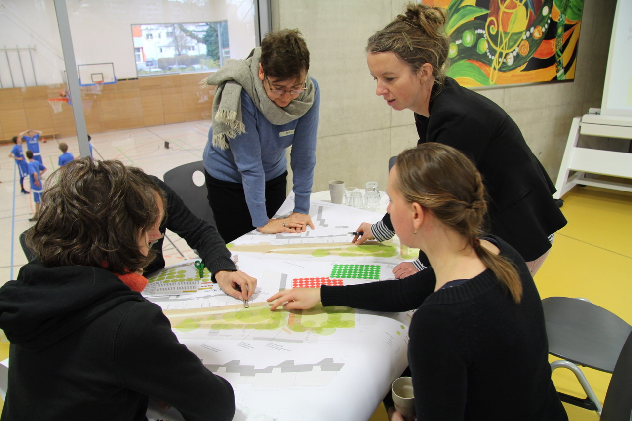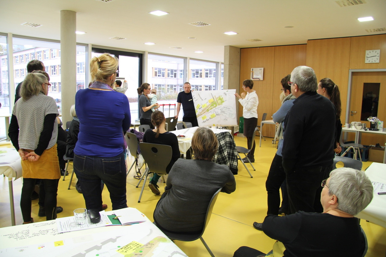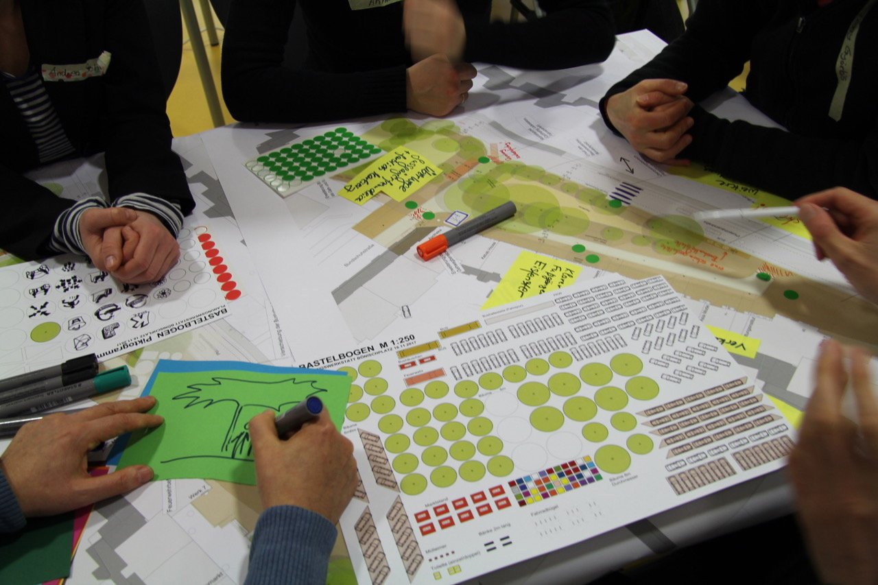 Die in der Umfrage benannten Wünsche haben die Teilnehmenden in der Planungswerkstatt konkretisiert: Weniger parkende Autos, um Platz für einen kleinen Wochenmarkt oder regelmäßige Stadtteilfeste zu schaffen, abwechslungsreiche Sitzmöbel, Kunst, Brunnen, Bäume und einrahmende Baumbeete, Zebrastreifen, Fahrradstellplätze und Spielpunkte. Die Vorschläge nahm das beauftragte Planungsbüro für die weitere Ausgestaltung des Bönischplatzes mit.