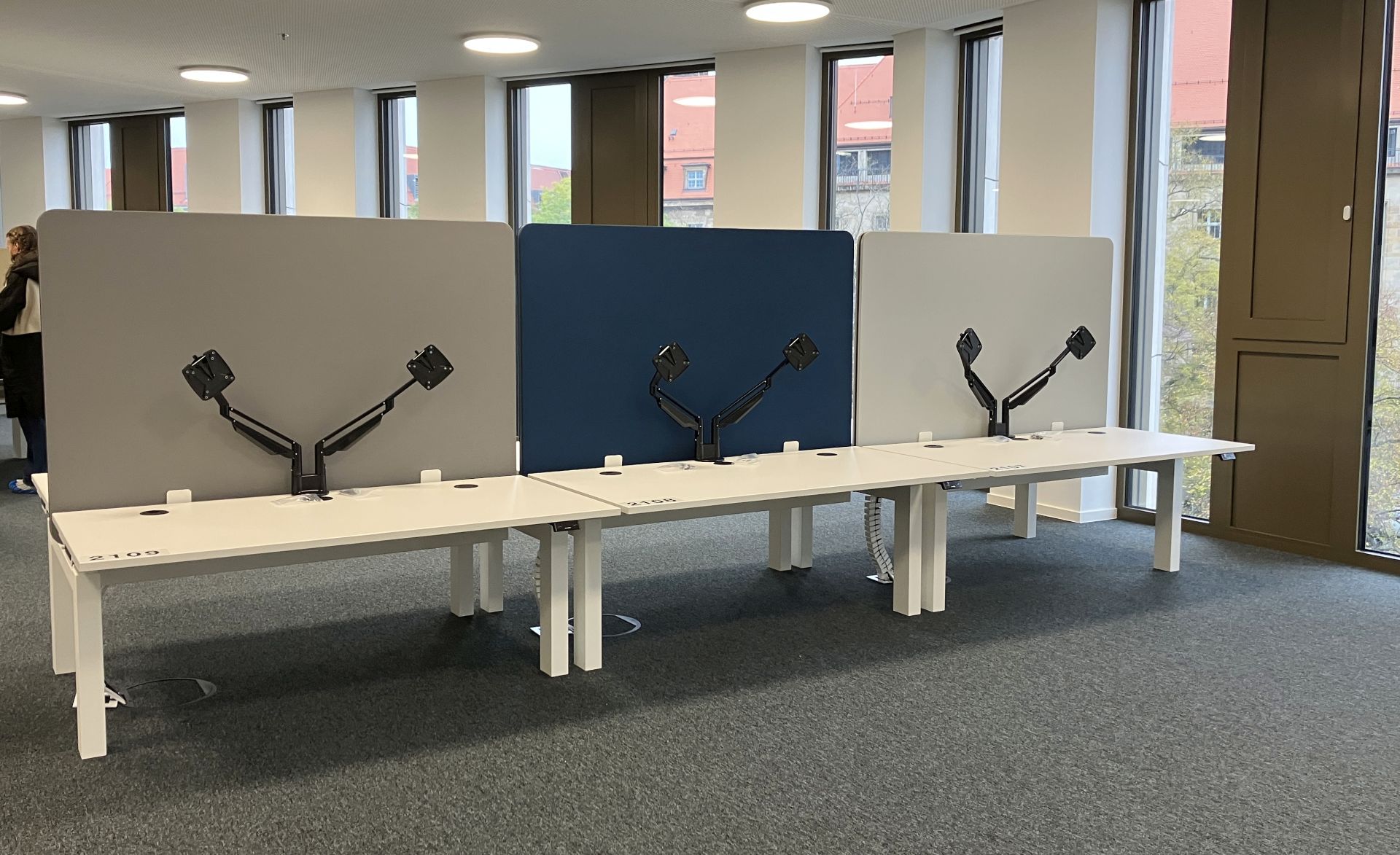 Mit der Anlieferung und Montage der ersten der rund 1.000 Schreibtische fiel im Oktober der Startschuss für die Einrichtung der Arbeitsplätze im Stadtforum. Die Beschäftigten können die Schreibtische digital reservieren, nur noch in Ausnahmefällen gibt es einen festen Arbeitsplatz. In den Büroetagen – vom zweiten bis zum sechsten Obergeschoss – befinden sich jeweils 150 bis 220 Arbeitsplätze.