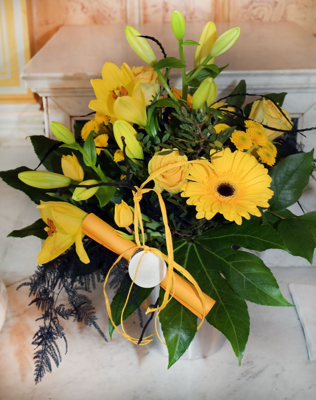 Seit 2019 gibt es ihn wieder, den Dresden-Strauß. Das ganz besondere Arrangement in den Stadtfarben Gelb und Schwarz aus dem Haus Gitterseeflorist ist mit dem in der Ausschreibung geforderten, nicht vergänglichen, Beiwerk mit Erinnerungswert selber ein kleines Kunstwerk.