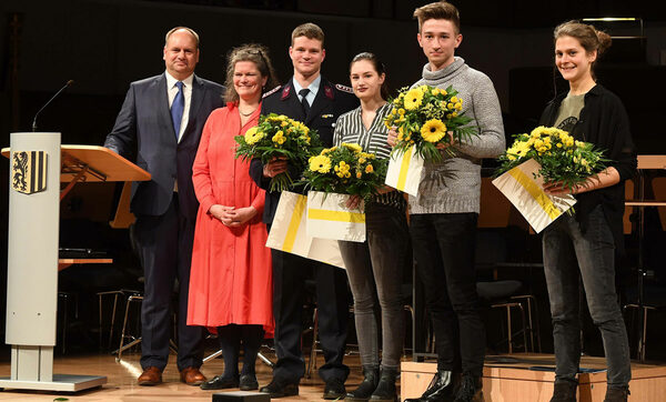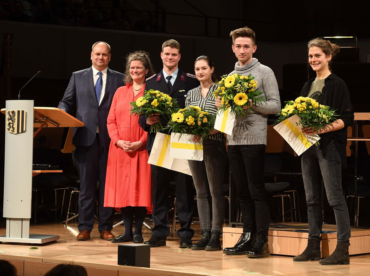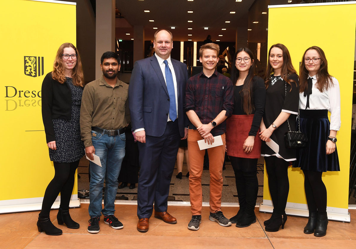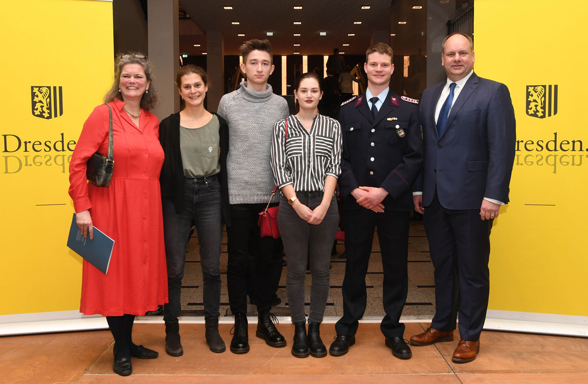 „Ohne Ehrenamt würden viele wichtige Bereiche in unserem Alltagsleben überhaupt nicht funktionieren. Den Dresdnerinnen und Dresdnern zu danken und ihnen Respekt zu zollen, ist der Hauptgrund für den Neujahrsempfang“, erklärte Oberbürgermeister Dirk Hilbert im Vorfeld der Veranstaltung. Gemeinsam mit der Geschäftsführerin der Bürgerstiftung Katrin Sachs zeichnete Oberbürgermeister stellvertretend für alle engagierten Dresdnerinnen und Dresdner vier junge Menschen aus, die sich in ihrer ehrenamtlichen Arbeit besonders verdient gemacht haben.